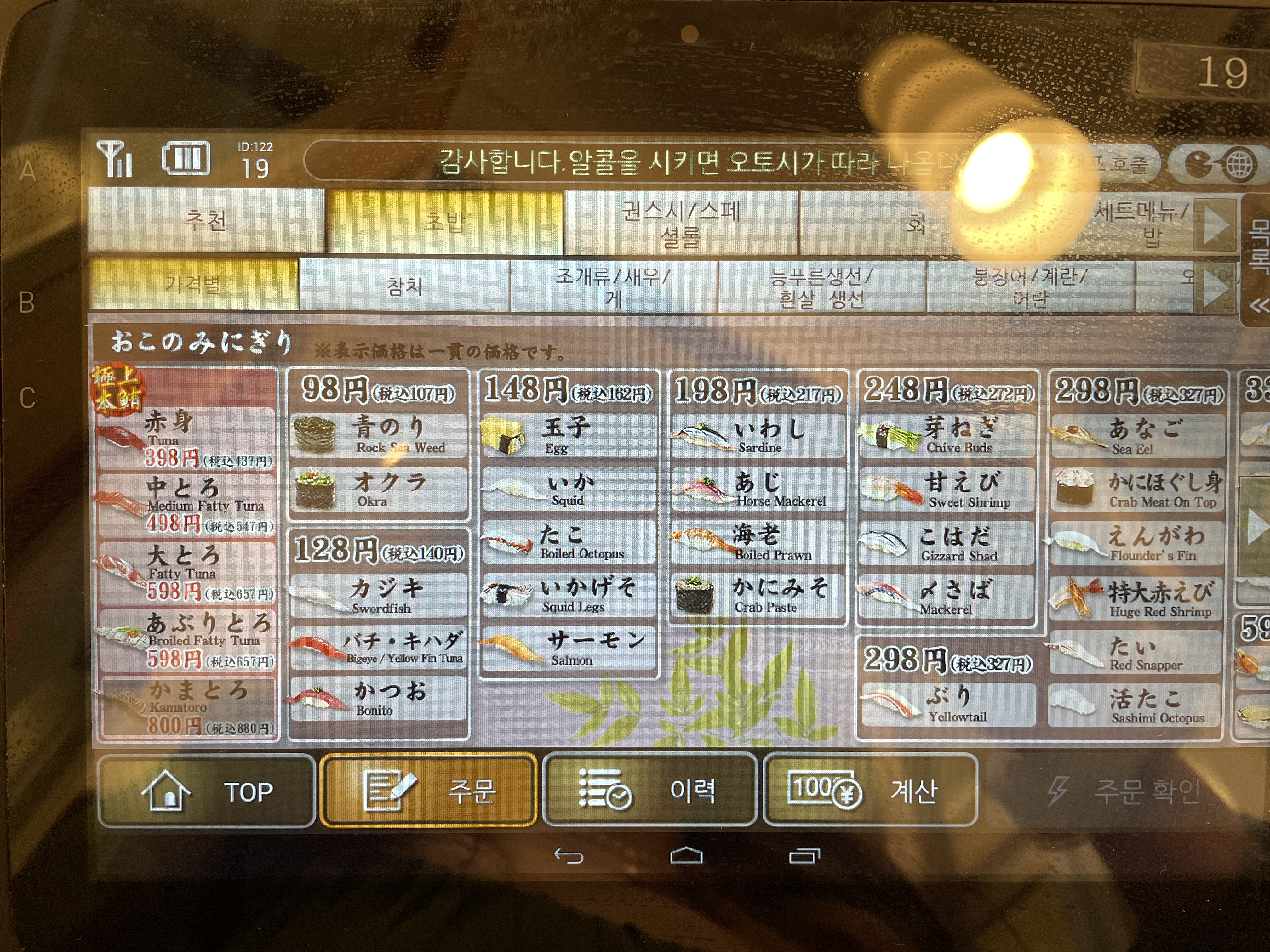 스시잔마이는 오사카,도쿄,후쿠오카 일본 어딜가도 볼수있는 체인점인데요